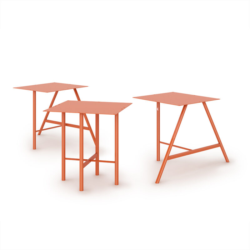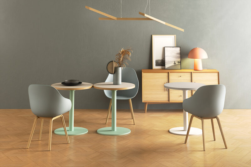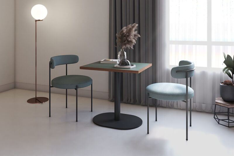 天板と脚の組み合わせで、自由に表情を変えられるカフェテーブル。